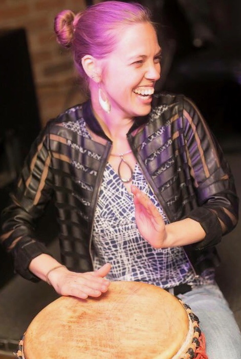 Michelle’s path as a musician is guided by deep study, cultural immersion, and a commitment to honoring traditional forms while creating something distinctly her own. Her musical journey began in childhood with classical piano and continued through years of playing in school bands, where she first developed a deep connection to rhythm and ensemble playing. That early training laid the groundwork for the complex rhythmic sensibility that now defines her work. She currently studies Afro-Cuban percussion with renowned percussionists Machito Crespo and Tito Belén and makes annual trips to Cuba for cultural and musical exploration. Her studies in West African percussion under Amo Soumah further inform her dynamic and layered approach to rhythm. She is equally at home on congas, cajón, djembe, riq, and a variety of traditional percussion instruments, drawing from a wide rhythmic vocabulary.